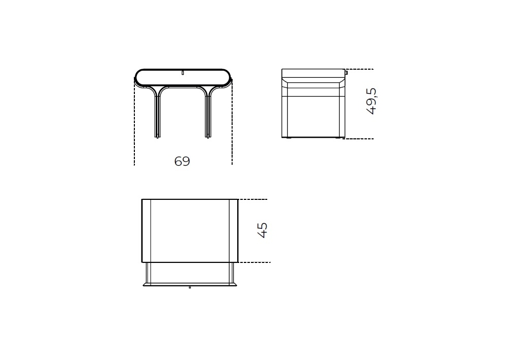 Stami Night conçue par Studiopepe pour Gallotti&Radice est une table de chevet avec tiroir avec base en frêne courbé teinté noir pore ouvert et détails en laiton brillant. Structure en bois avec revêtement en cuir ou suédine dans les coloris de nos échantillons.