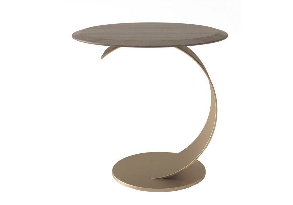 Curvo conçue par Serra By Milia pour Escooh est une table de chevet avec structure métallique incurvée et plateau en bois, métal, marbre, verre laqué ou recouvert de cuir. Disponible en deux dimensions.