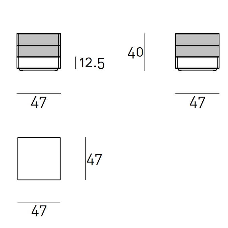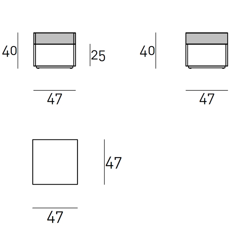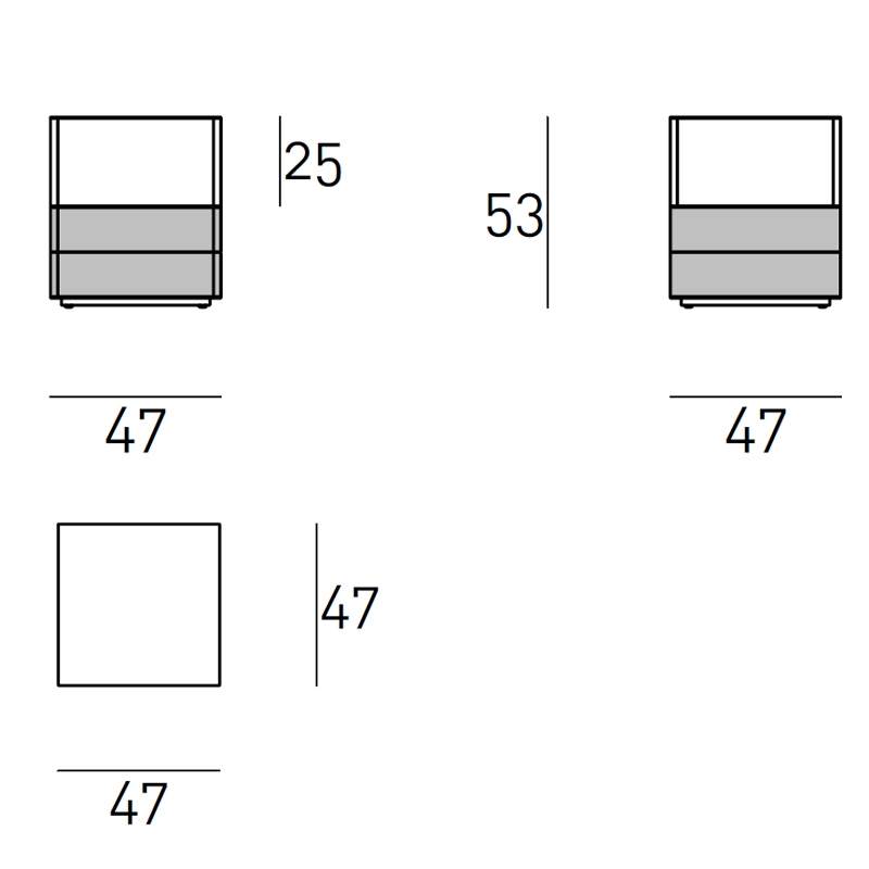 | Dimensions | 47 x 47 x H 25 cm; 47 x 47 x H 12,5 cm; 47 x 47 x H 53 cm. |