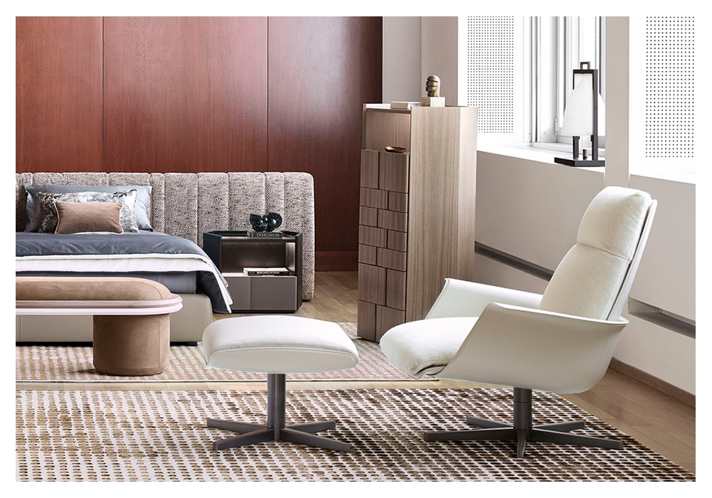 Delphi conçue par Carlo Colombo pour Giorgetti est une table de chevet en noyer canaletto, disponible en différentes finitions et dans la version avec LED et prise USB et USB-C ou sans. Sur demande, les façades peuvent être recouvertes de cuir dans les couleurs disponibles.