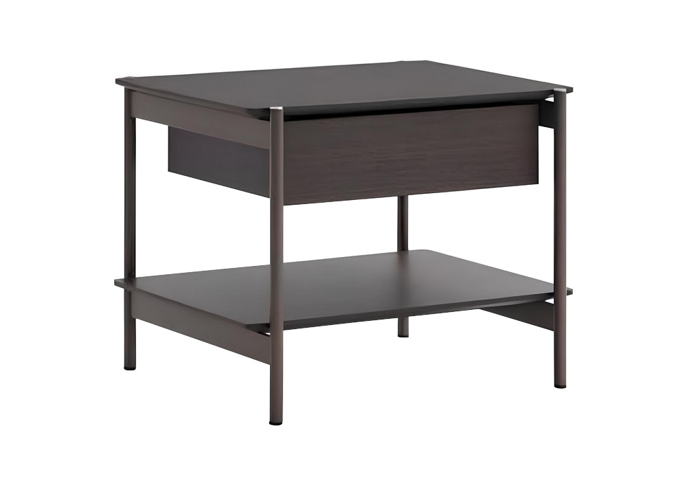 Erys conçue par Gabriele & Oscar Buratti pour Ditre Italia est une table de chevet avec structure en métal, plateau et tiroir en bois. Disponible en différentes finitions.