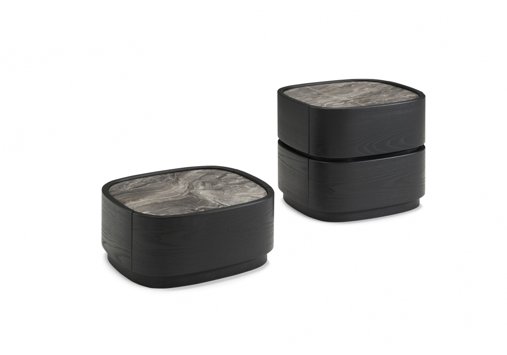 Oke conçue par Setsu & Shinobu Ito + Leonardo Mercurio pour Conte Casa est une table de chevet réalisée avec une structure en bois et un plateau en marbre. Disponible en différentes finitions et dimensions.