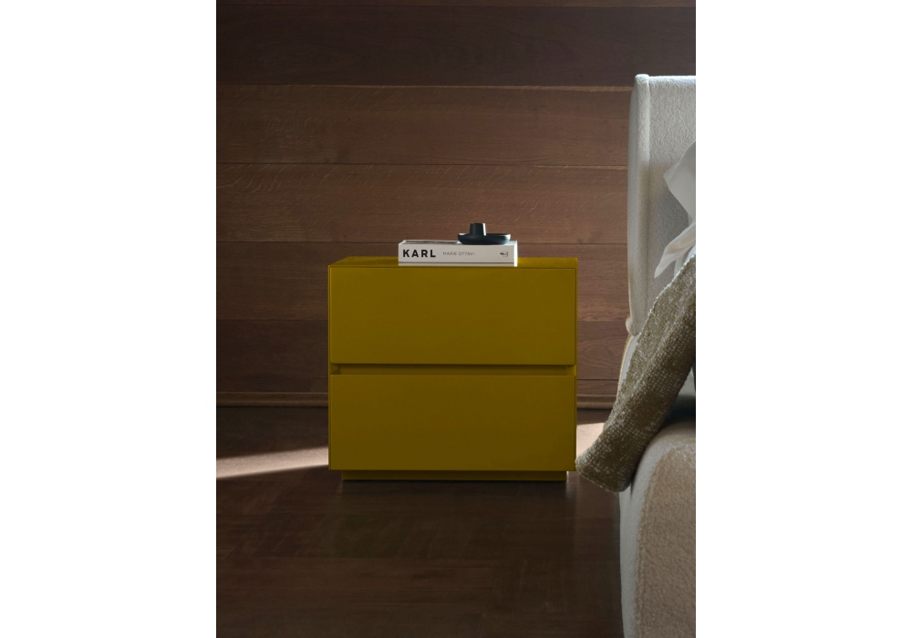 Avenue conçue par Joe Garzone pour Conte Casa est une table de chevet réalisée avec une structure en bois plaqué en différentes essences ou en bois laqué brillant ou mat, des pieds en métal moulé sous pression peint et des tiroirs intérieurs en bois plaqué, effet cuir. Disponible en différentes finitions et dimensions.