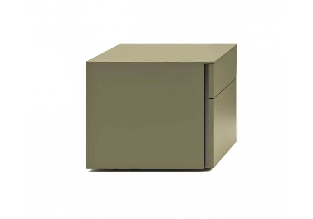 Lama conçue par Dall'Agnese, est une table de chevet caractérisée par une structure solide en panneaux de particules de bois, disponible en finition mélaminée, laquée ou plaquée bois peint. Les façades conservent le même niveau de qualité et de finition. Le plateau est disponible en deux variantes : en grès, avec des plaques coupées au hasard pour un effet unique, ou en bois, garantissant élégance et résistance. Les tiroirs, avec un effet cuir interne, coulissent sur des guides métalliques à coulissement élevé avec fermeture amortie « Blumotion ». Le système d'ouverture se fait par une rainure latérale en aluminium, tandis que la base est soutenue par des pieds métalliques réglables et dissimulés.