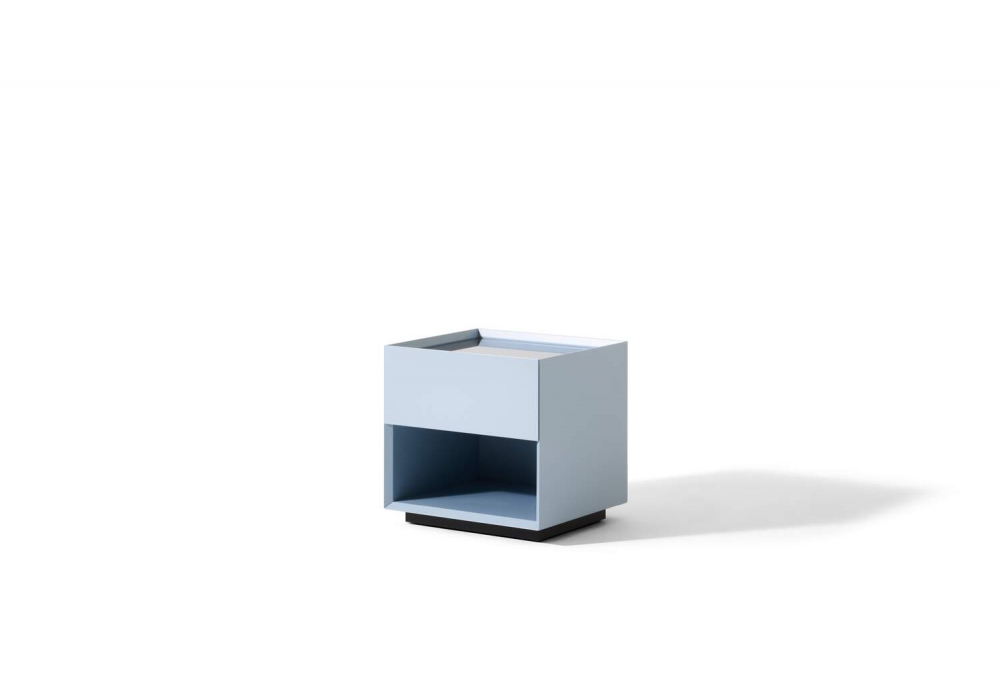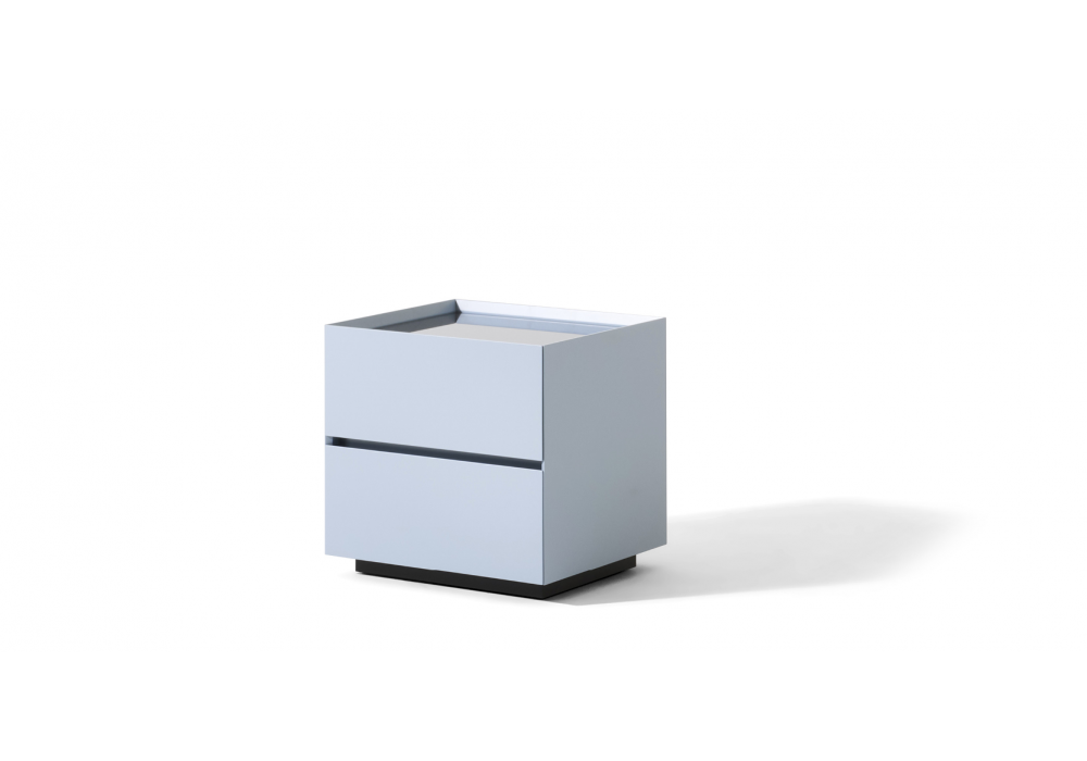 Ghost Box conçue par Mikal Harrsen pour Cassina est une table de chevet composée d'une structure en bois laqué mat ou brillant et d'un plateau en verre ou en marbre. Disponible en différentes finitions et modèles.