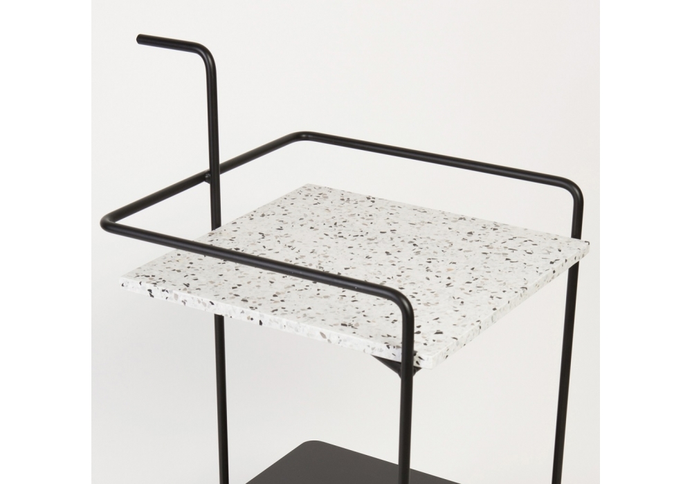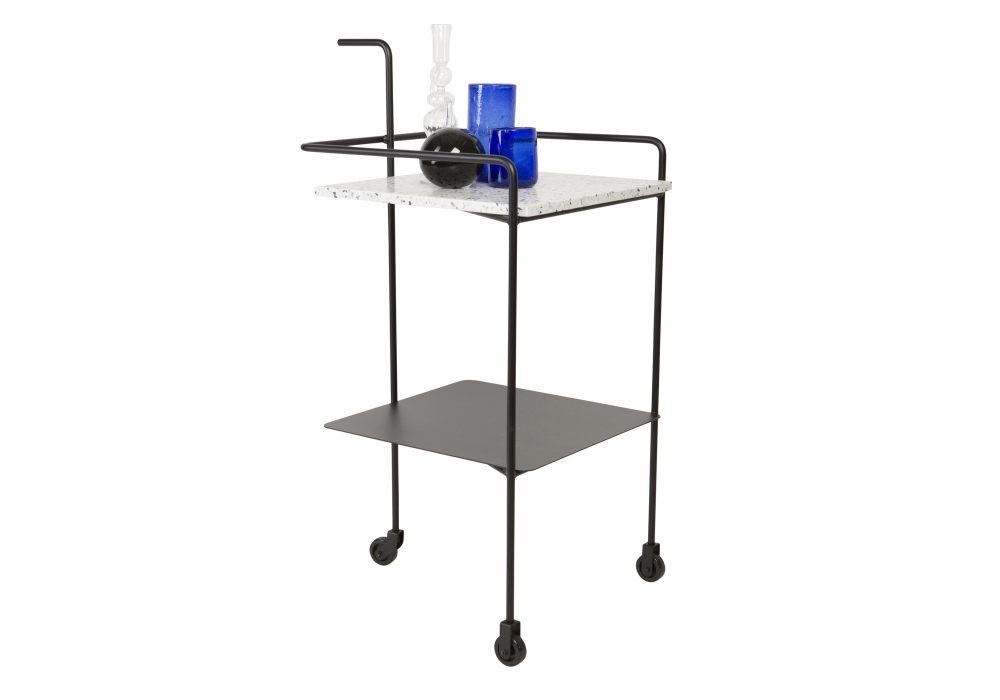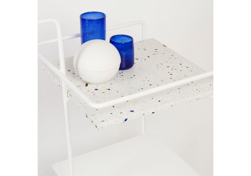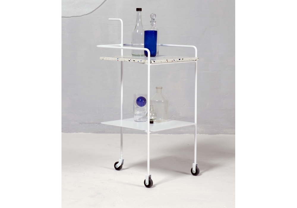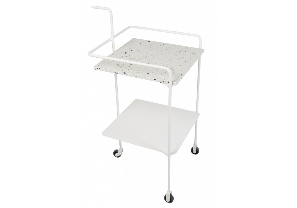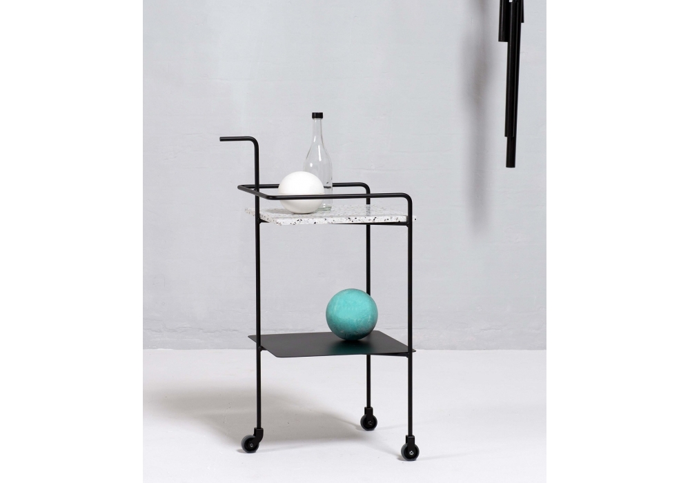 Confetti designed by Derya Arpac for OK Designed is a trolley best suitable for snacks and drinks. It is the best partner for your afternoon cocktails or as a simple and sturdy side table. The frame is in powder coated metal which lying on rubber weels. Available in 2 different finishes: white structure or black structure.