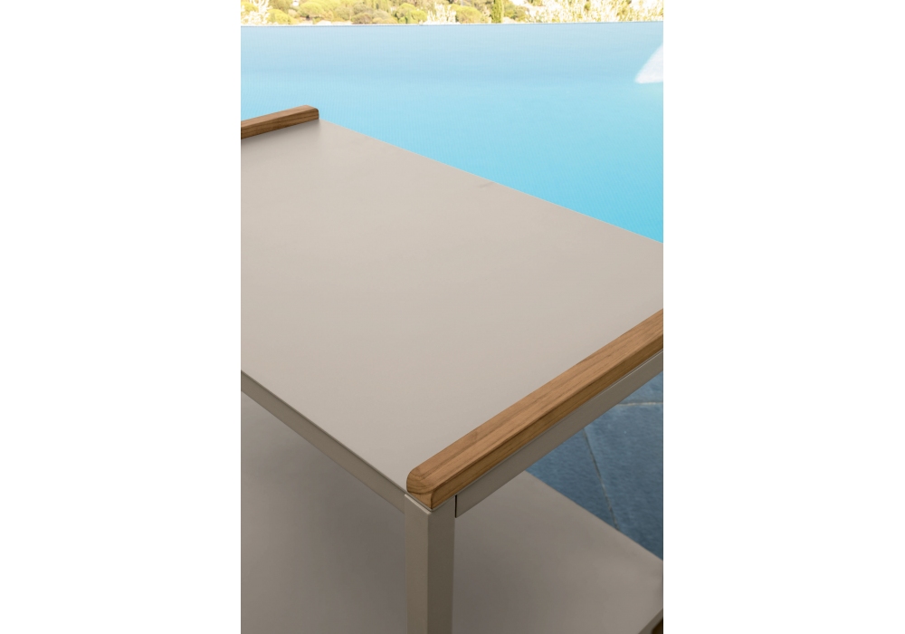 Cart de la collection Accessoires de Talenti est un chariot avec une structure en aluminium peint en blanc ou en graphite. Top avec des inserts en teck.