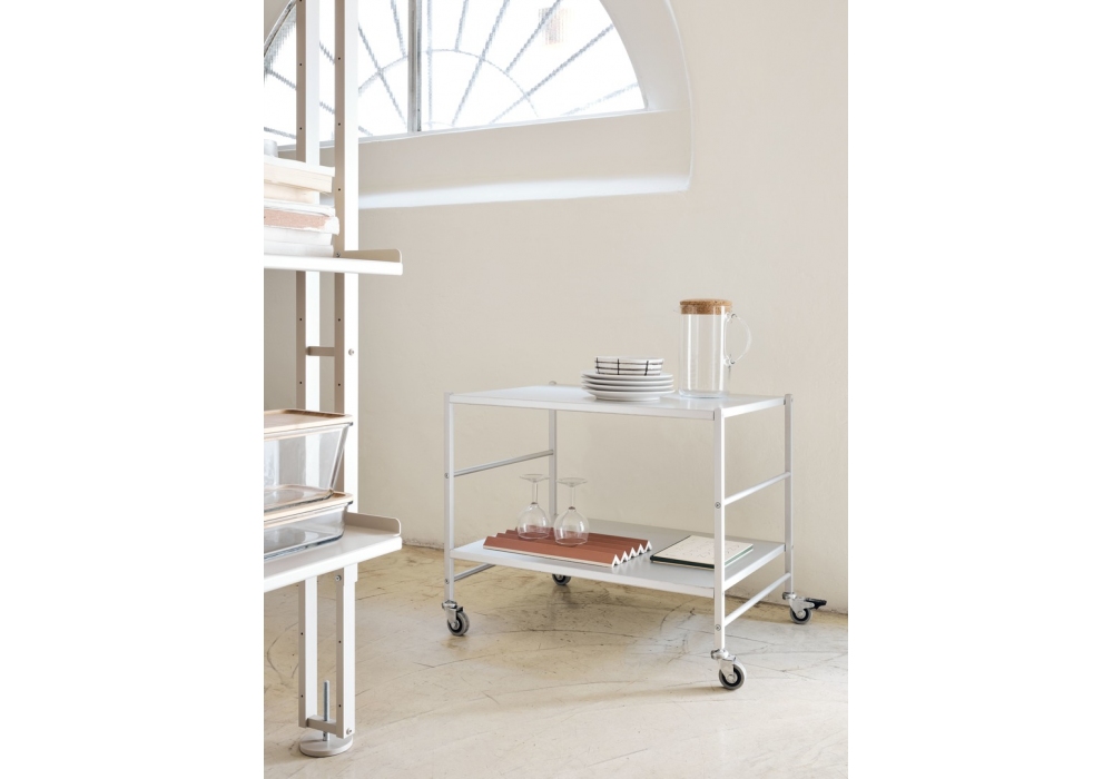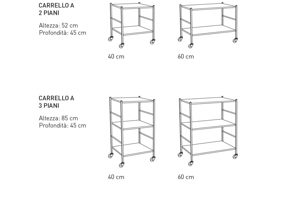 La collection de chariots conçue par Kriptonite est réalisée avec une structure en aluminium anodisé avec des roues dont deux freinantes. Disponible en différentes dimensions.