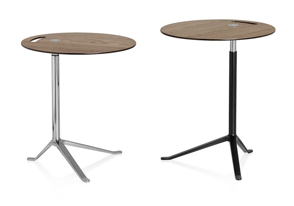 Little Friend conçue par Kasper Salto pour Fritz Hansen est une table fixe ou réglable en hauteur réalisée avec plateau en bois et base en aluminium chromé ou laqué noir. Disponible en différentes finitions.