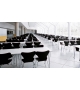 Rectangular conçue par Piet Hein, Bruno Mathsson, Arne Jacobsen pour Fritz Hansen est une table avec pieds en acier chromé ou enduit de poudre. Plateau en bois stratifié ou plaqué. Disponible en différentes finitions et dimensions.