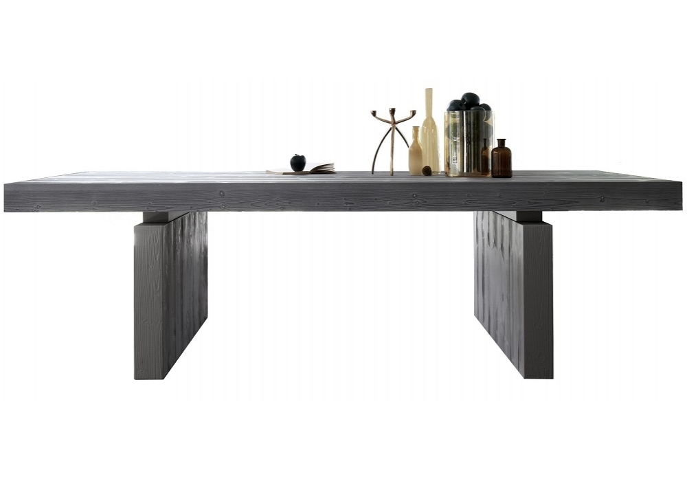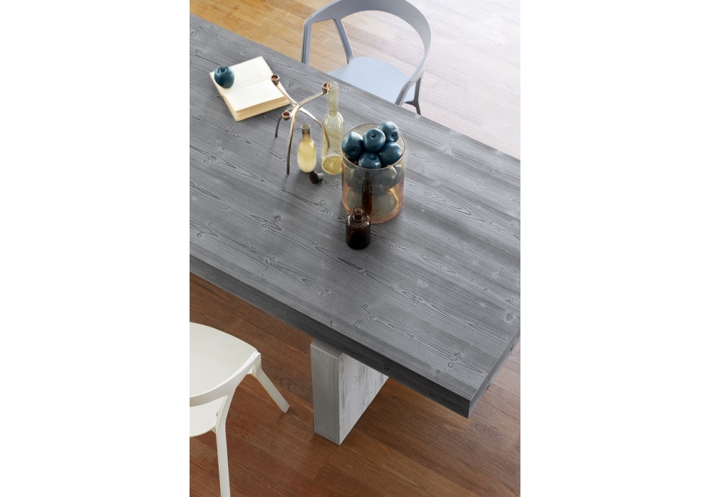 Big conçue par Silvano Pierdonà pour Capodopera est une table en MDF laqué brillant ou mat ou avec des panneaux en bois plaqué.