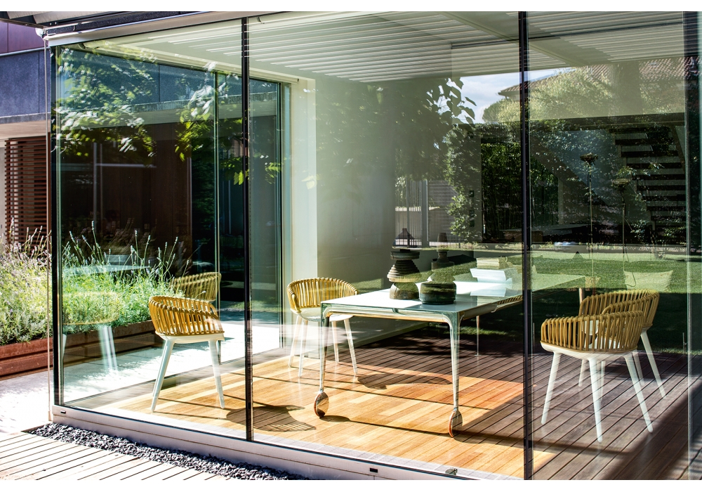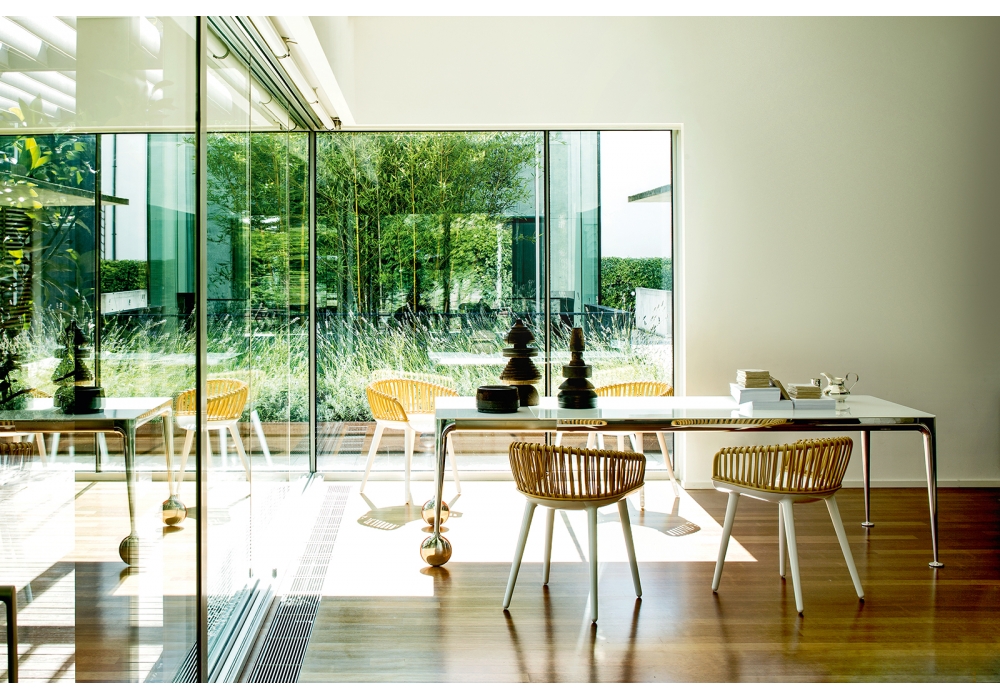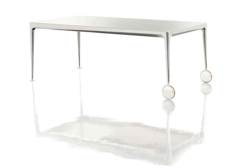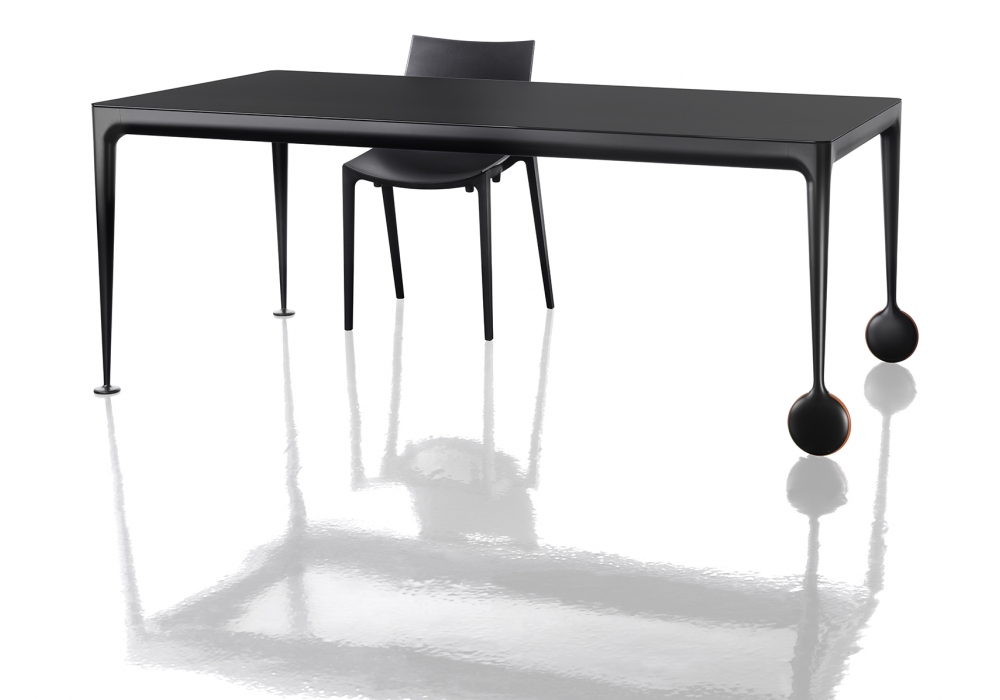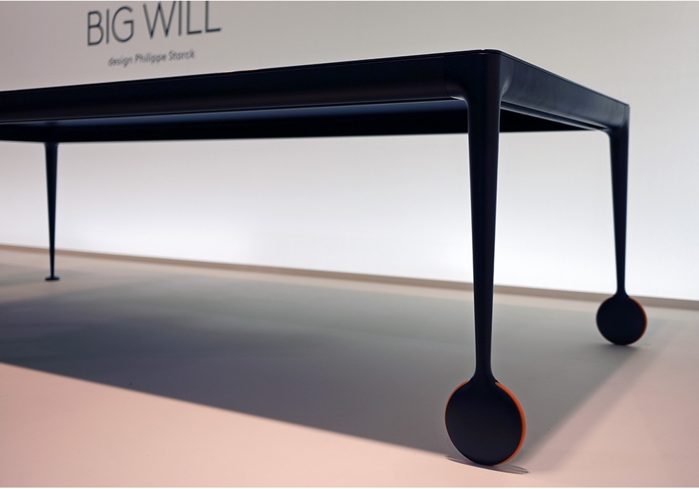Big Will conçue par Philippe Starck pour Magis est une table avec pieds en aluminium moulé sous pression poli ou peint. Traverses en profilé d'aluminium peint. Plateaux en verre trempé brillant ou opaque dépoli à l'acide. Roues en caoutchouc.