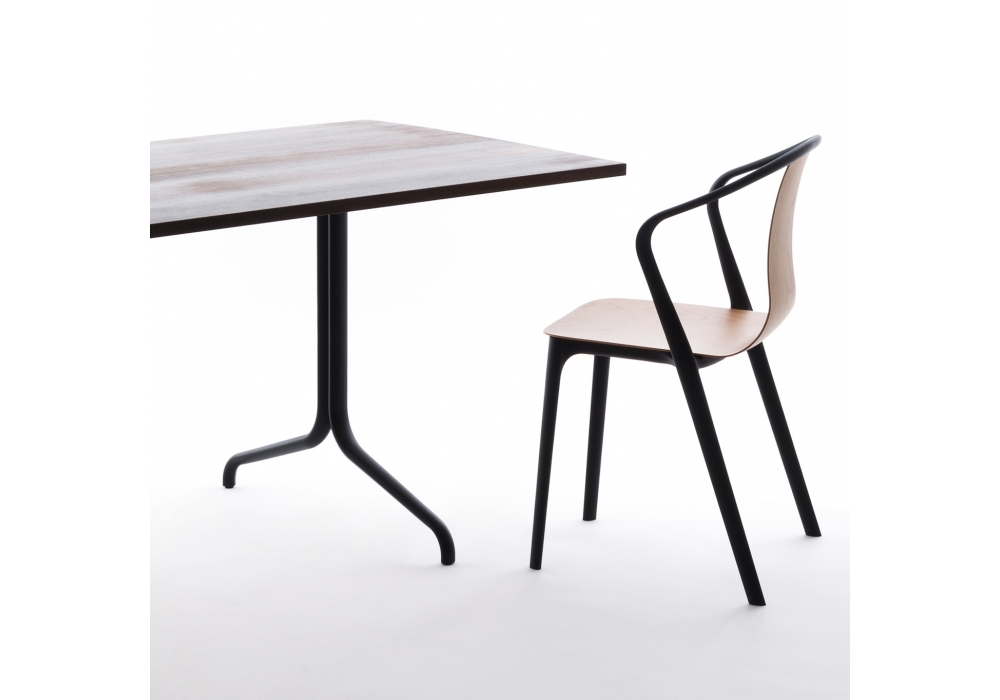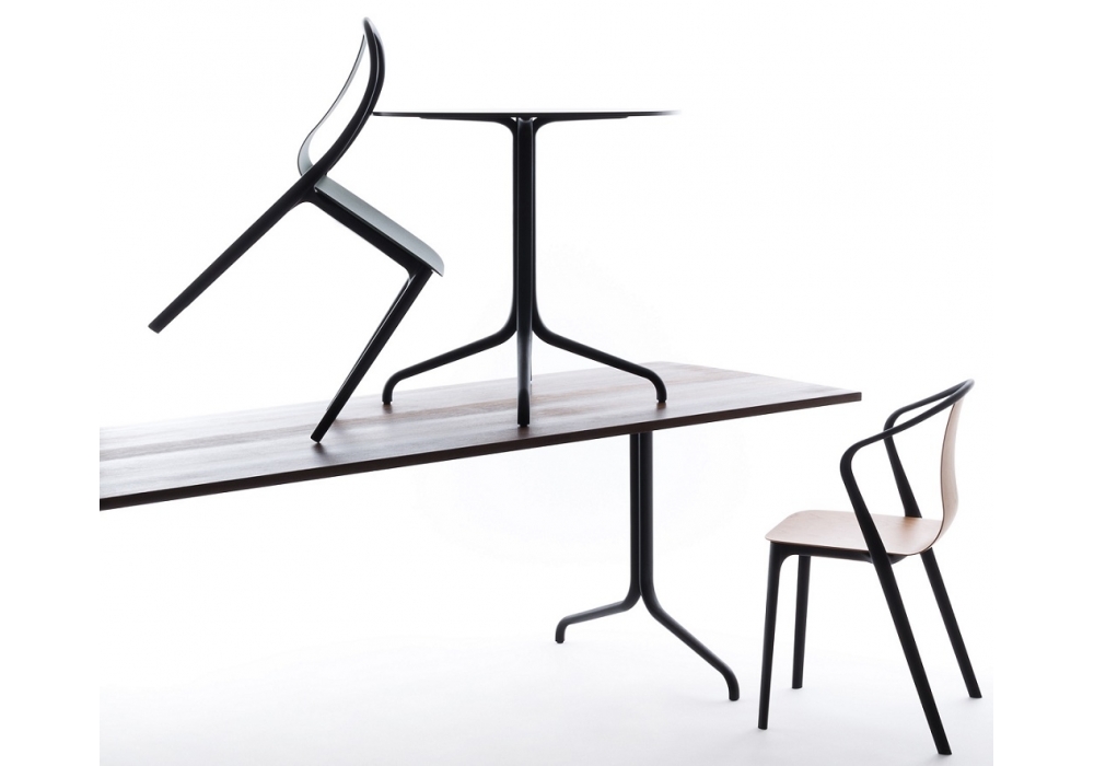 Belleville Table designed by Ronan & Erwan Bouroullec for Vitra is a tables collection. The Belleville Tables reveal a similar capacity for transformation, featuring table tops in laminate, wood or stone, along with elegantly arched legs of cast aluminium. The Belleville Tables are modelled on the typology of the classic bistro table.