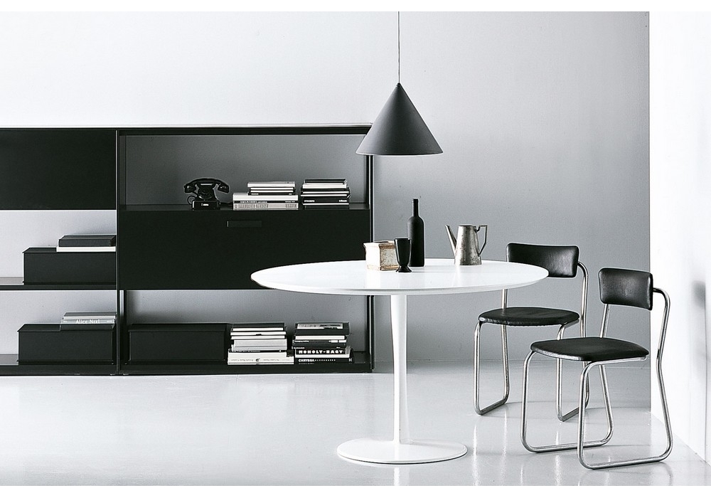 Join is a table designed by Decoma Design for Porro. Join, designed by Decoma Design, is a table with a circular, oval, square with rounded corners or irregular top, featured by a bearing, ‘drop’ shaped leg with a suggestive geometric volume. The structure is in high resistance white or black matt lacquered.