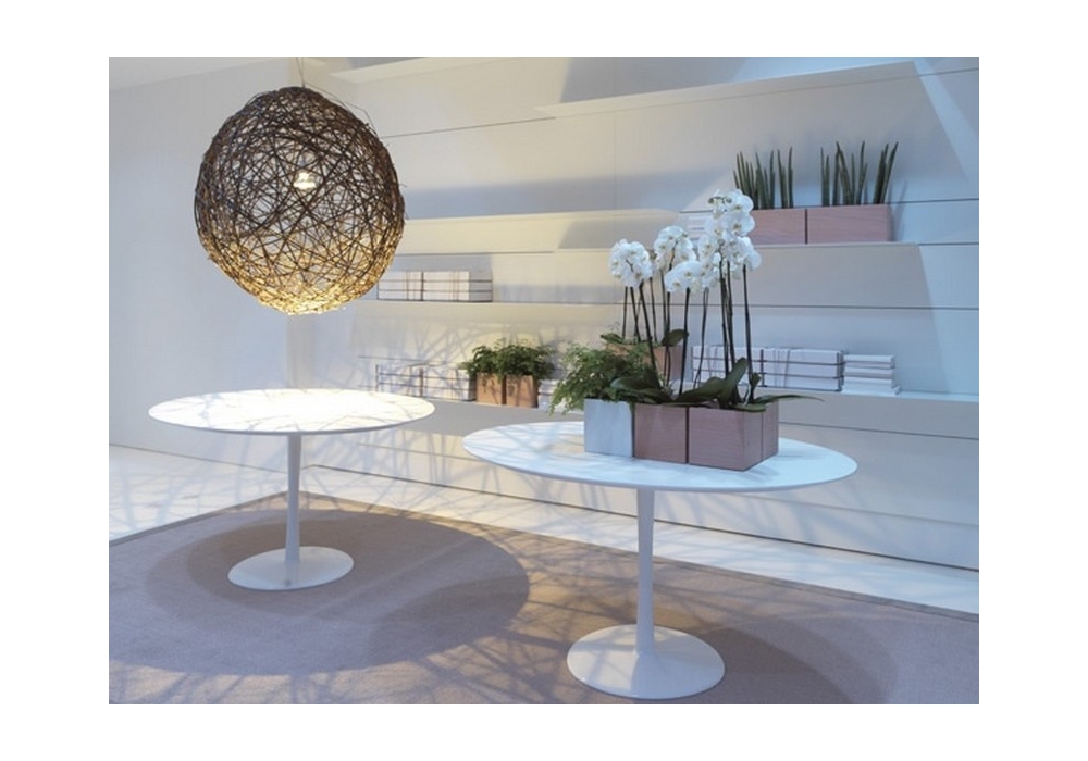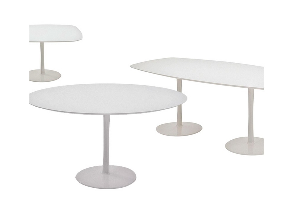 Join is a table designed by Decoma Design for Porro. Join, designed by Decoma Design, is a table with a circular, oval, square with rounded corners or irregular top, featured by a bearing, ‘drop’ shaped leg with a suggestive geometric volume. It is available in three different diameters and other 3 dimensions. Join will suit either public or private spaces. The structure is in high resistance white or black matt lacquered.