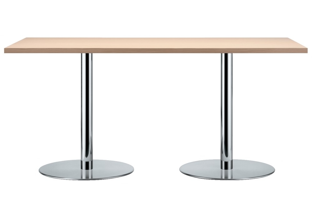 S 1126 conçue par James Irvine pour Thonet est une table rectangulaire avec structure en acier tubulaire chromé ou peint électrostatiquement en noir ou blanc. Dessus en panneau latté avec placage en bois véritable ou stratifié. Disponible en différentes tailles.