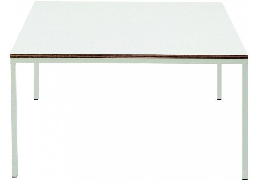 Quadrato conçue et produite par DePadova est une table avec base en acier laqué blanc et plateau en panneau de particules avec bord en contreplaqué marine recouvert de stratifié HPL blanc. Disponible en différentes tailles.