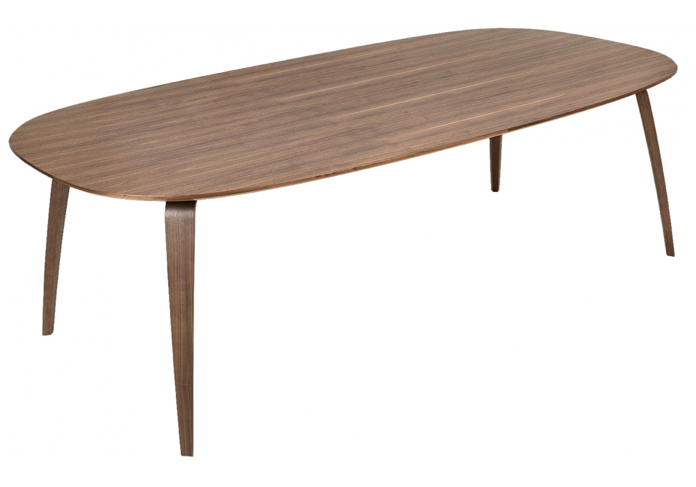 Dining Table conçue par Komplot Design pour Gubi est une table elliptique entièrement réalisée en bois. Disponible en différentes finitions.
