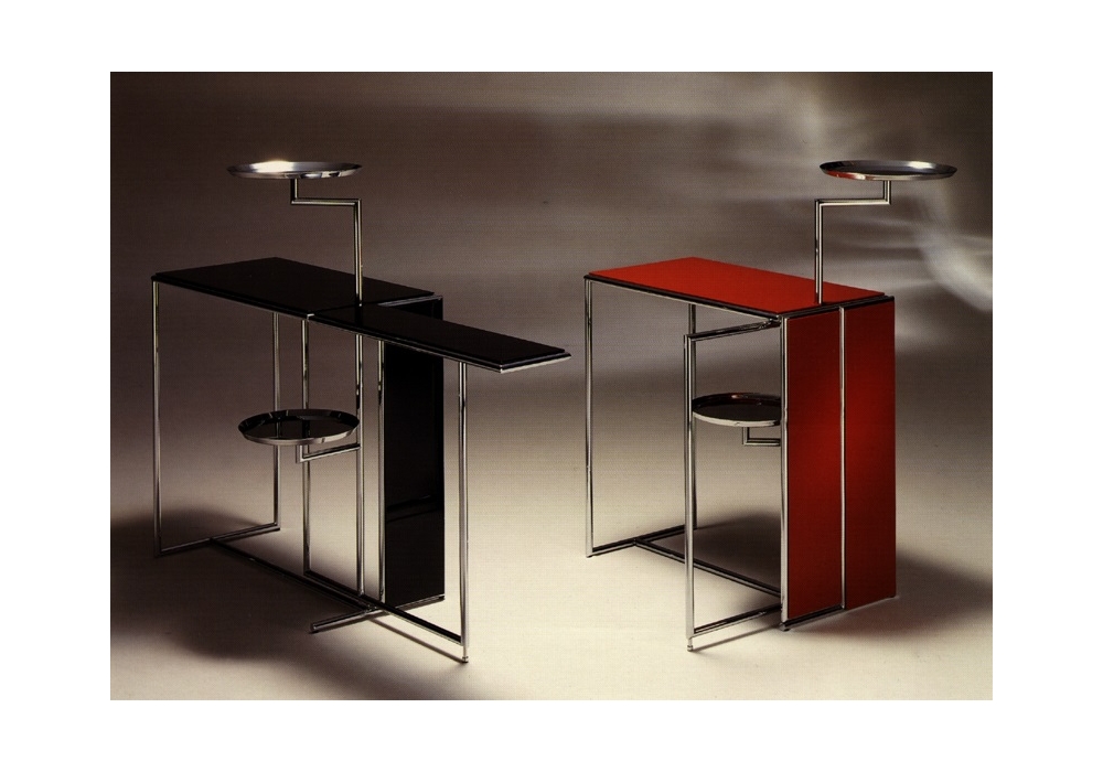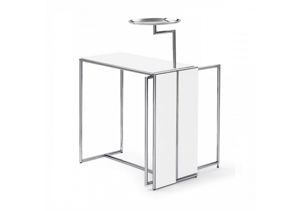 Rivoli conçu par Eileen Gray pour ClassiCon est une table d'appoint avec dessus rabattable et deux plateaux tournants. Structure et plateaux en acier chromé. Dessus de table en MDF laqué brillant. Disponible en différentes finitions.