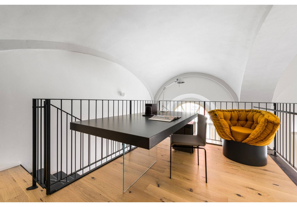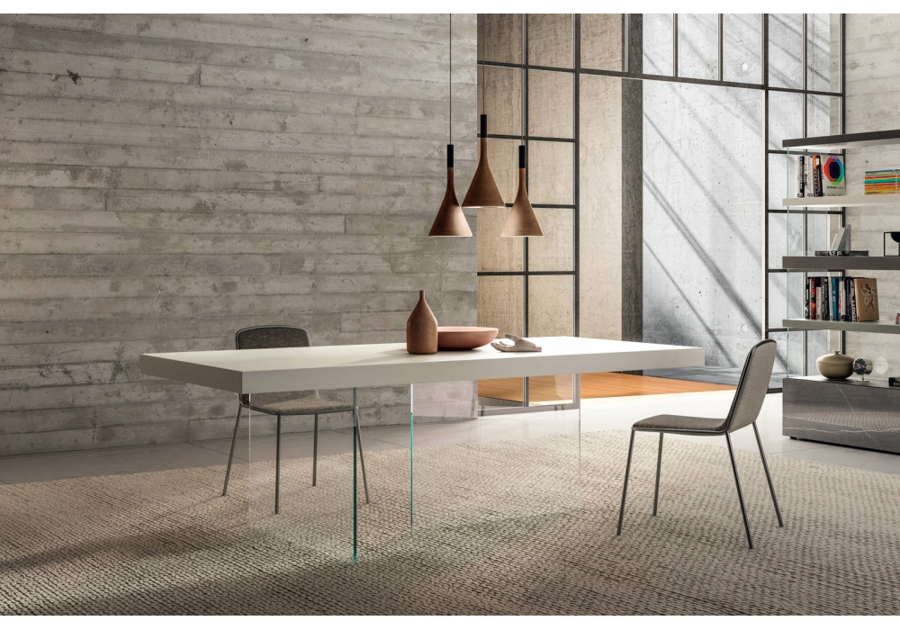 Air conçue par Daniele Lago pour Lago est une table réalisée avec des pieds en verre extra-clair ou gris fumé et un plateau en stratifié laqué. Disponible en différentes finitions et dimensions.