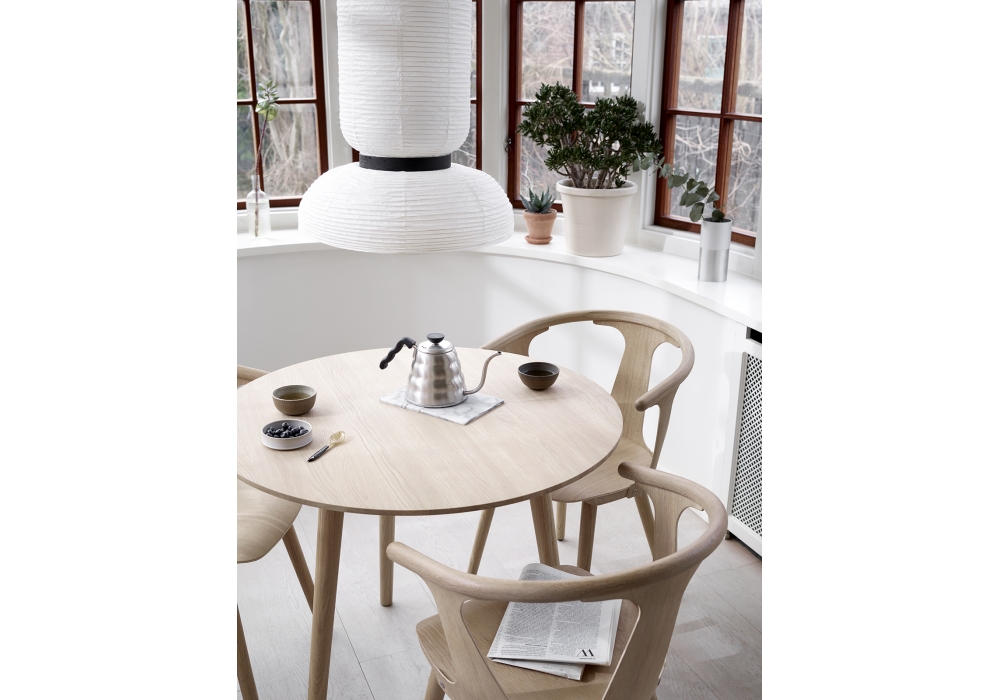 In Between conçue par Sami Kallio de &Tradition est une table ronde en bois massif huilé ou laqué. Disponible en différentes finitions et dimensions.