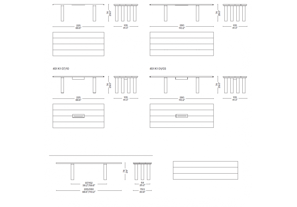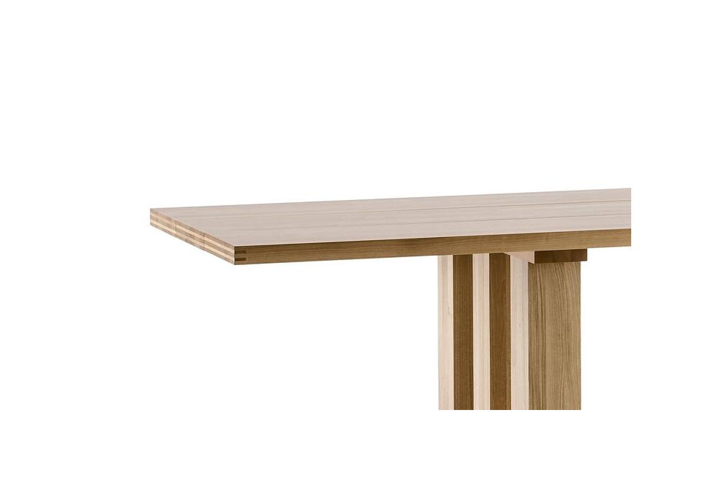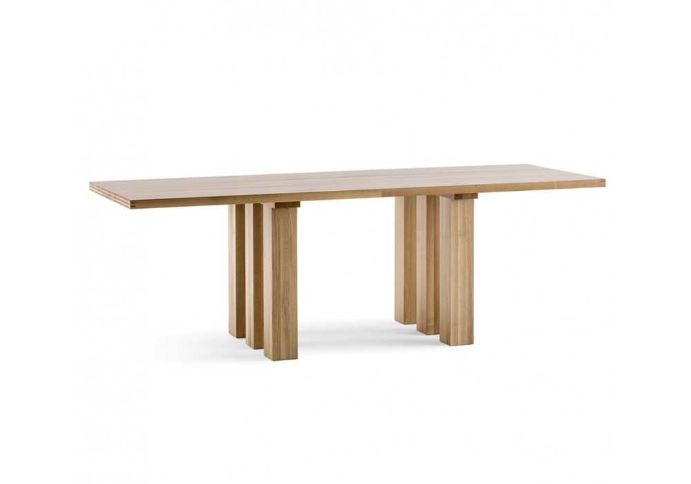 451 La Basilica conçue par Mario Bellini pour Cassina est une table rectangulaire en bois de frêne. Disponible en deux versions : plateau à 3 douelles et piètement à 6 pieds ou plateau à 4 douelles et piètement à 8 pieds.