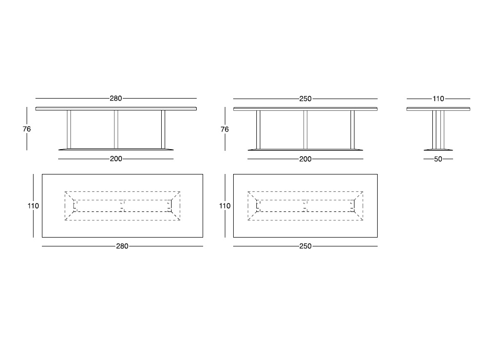 | Dimensions | 280 x 110 x H 76 cm; 250 x 110 x H 76 cm. |