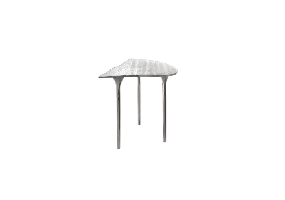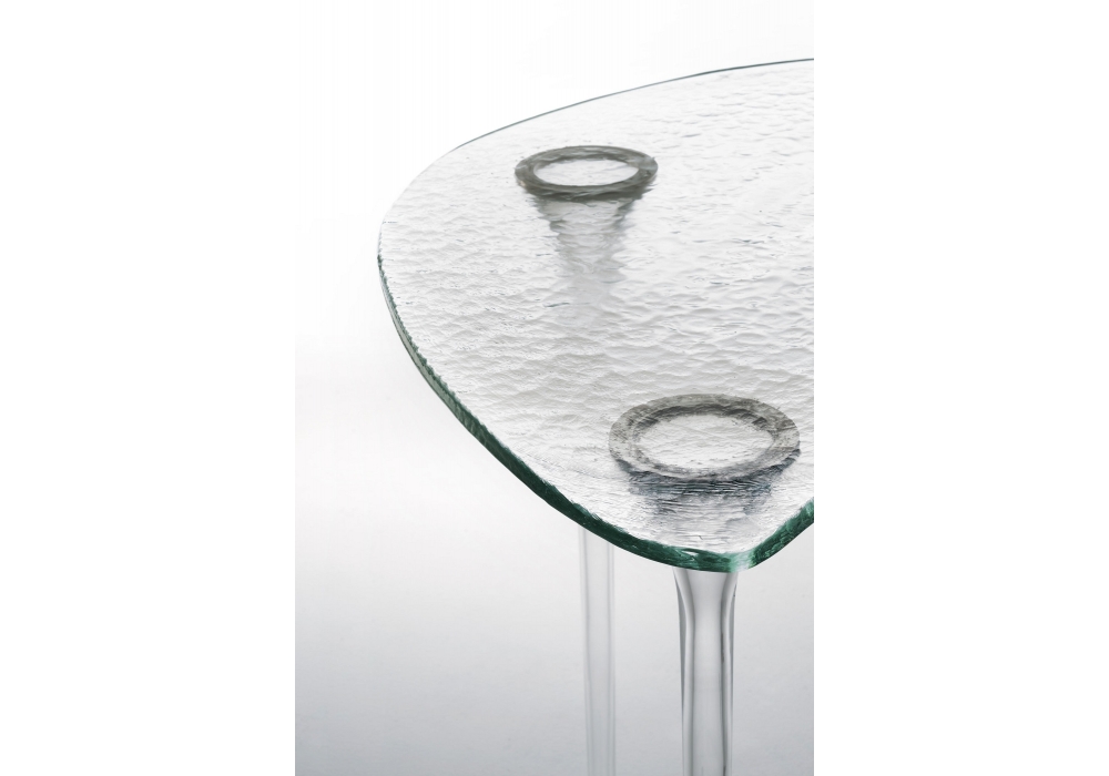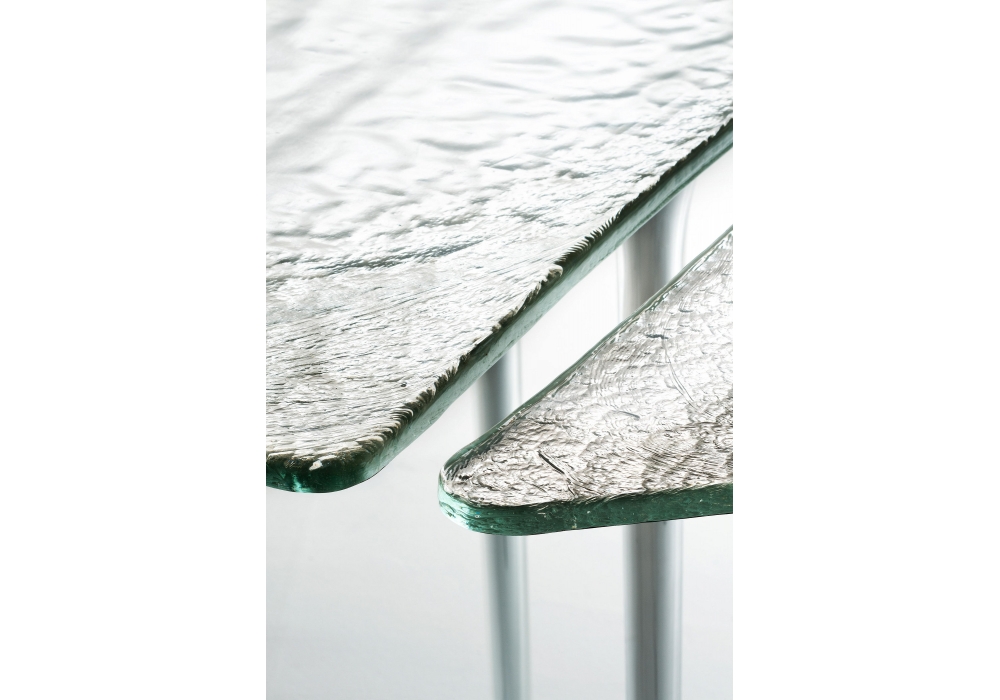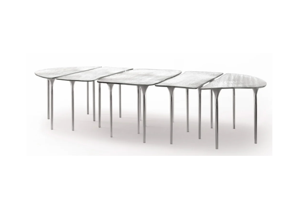 Specchio di Venere conçue par Massimiliano Locatelli - CLS Architetti pour Glas Italia est une belle table aux formes douces et irrégulières avec bords arrondis et élégants et minces pieds en cristal soufflé. Les différentes pièces, sont utilisables indépendamment les unes des autres, rapprochées, elles donnent forme à une table de grande dimension. Disponibles avec plateaux en cristal spécial coulé argenté. Les pieds sont toujours réalisés dans la même finition du plateau.