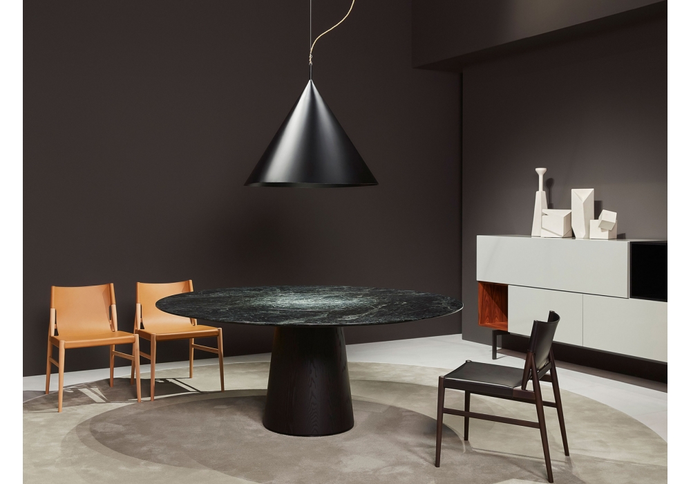 Materic conçue par Piero Lissoni pour Porro est une table avec base en frenê et plateau en marbre. Cette table est un exercice de géométrie pure, une icône visuelle qui combine des inspirations classiques et une âme contemporaine.