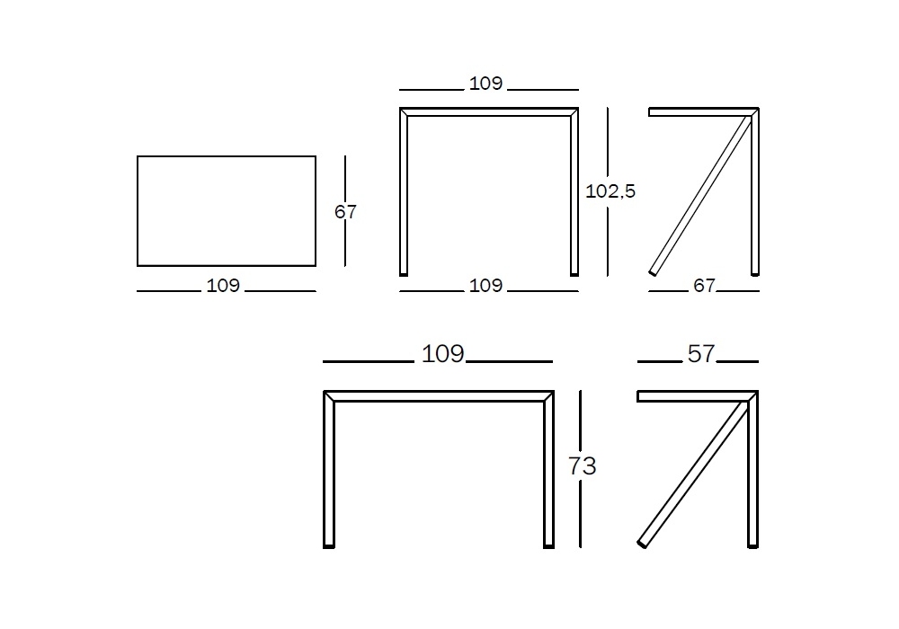 | Dimensions | 109 x 57 x H 73 cm; 109 x 67 x H 102,5 cm |