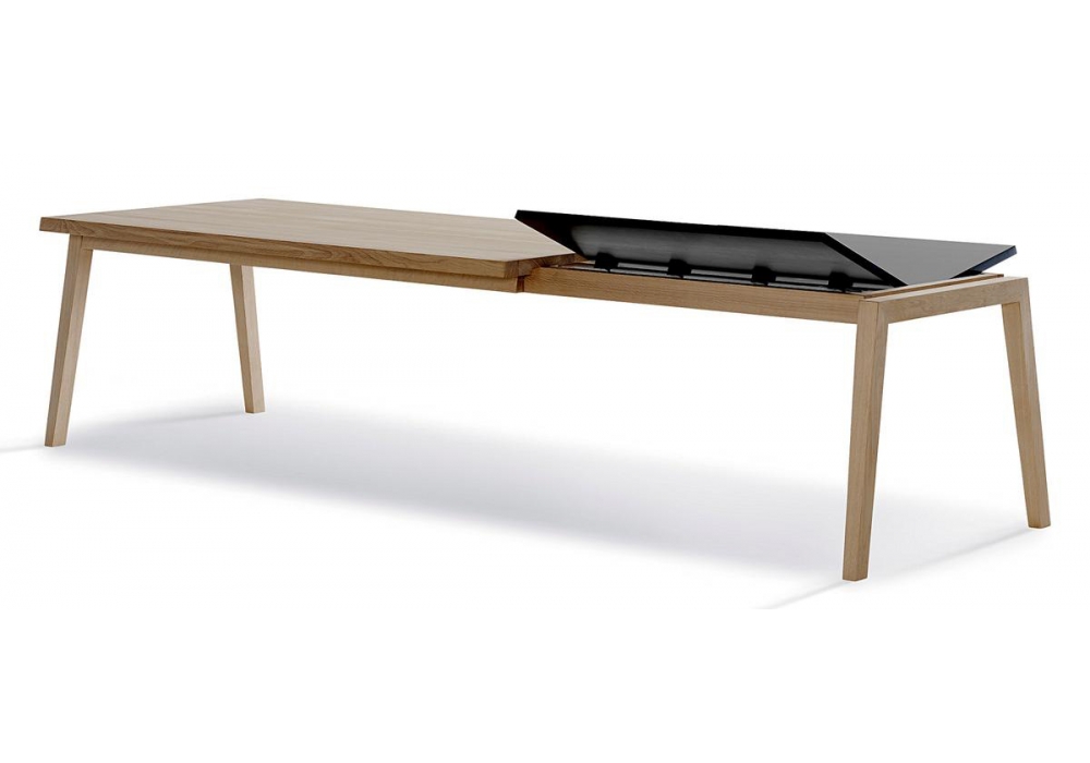 SH900 Extend conçue par Christina Strand & Niels Hvass pour Carl Hansen & Søn est une table réalisée en bois de chêne massif en différentes finitions, avec rallonges noires incorporées.