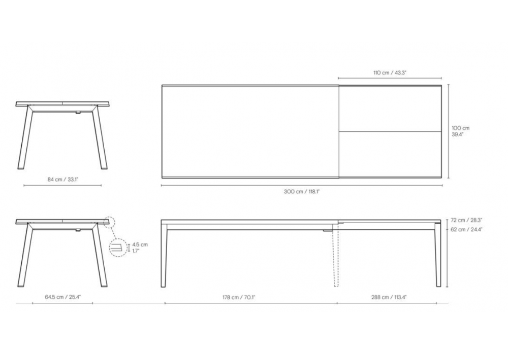 | Longueur | 190 + 110 cm |