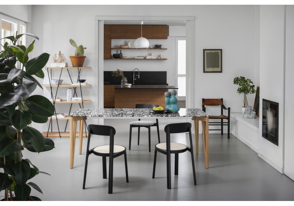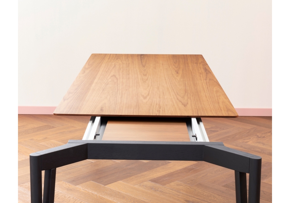 Decapo conçue par Francesco Beghetto pour Miniforms est une table à manger extensible ou fixe. Plateau en bois, céramique, fenix, verre ou marbre. Disponible en différentes finitions. Pieds en noyer Canaletto ou en chêne.