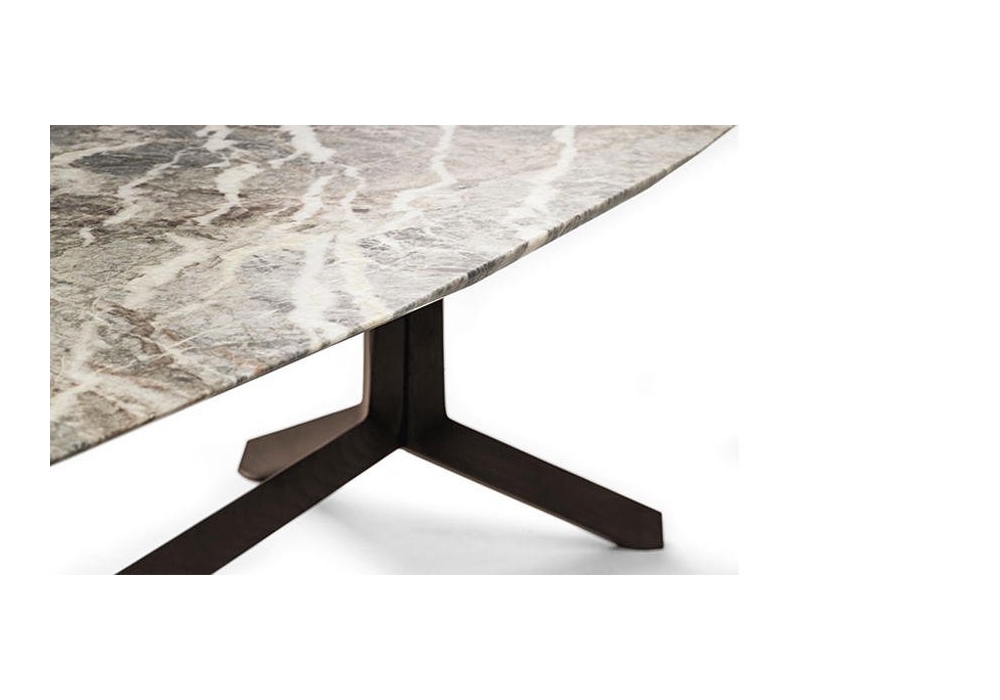 Othello conçu par Roberto Lazzeroni pour Poltrona Frau est une table avec structure en bois de frêne et plateau en marbre ou verre fumé. Disponible en deux dimensions, avec plateau rond ou carré.