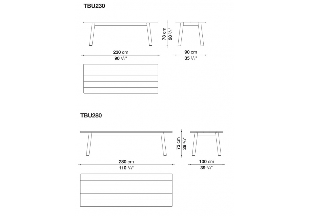 | Dimensions | 230 x 90 x H 73 cm; 280 x 100 x H 73 cm. |