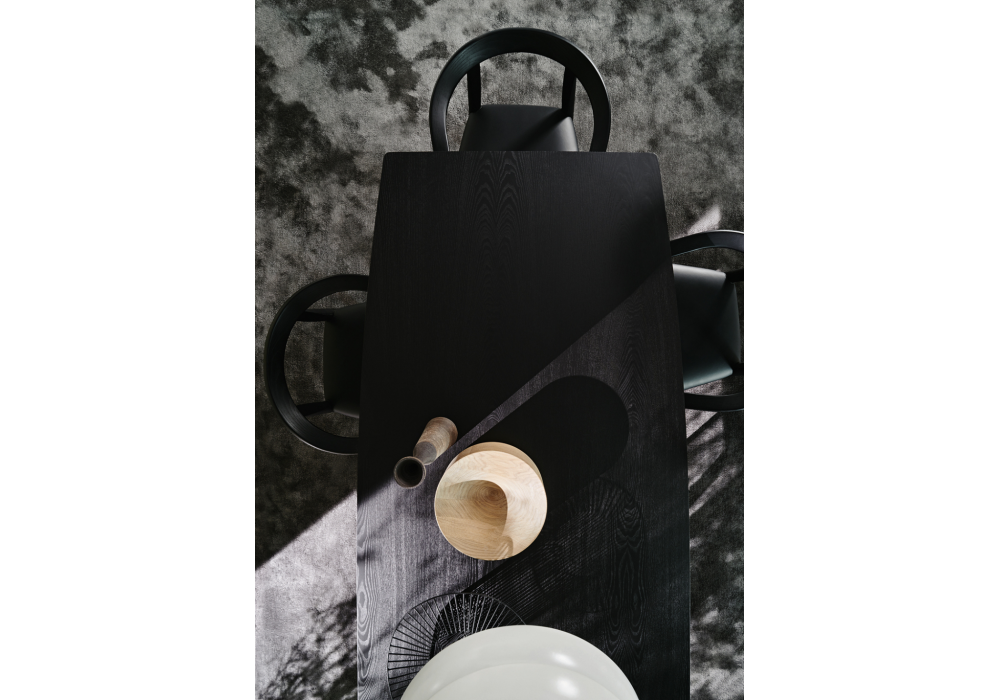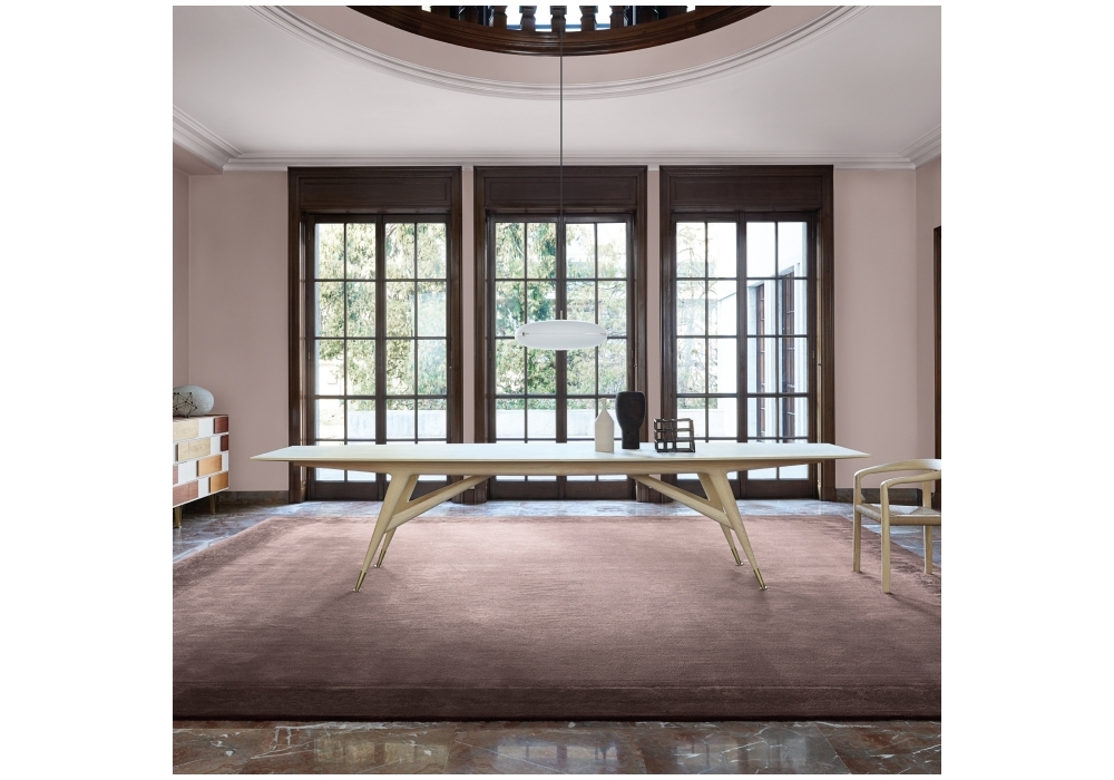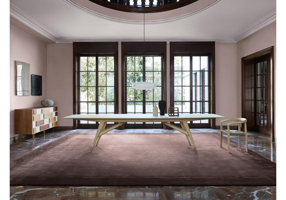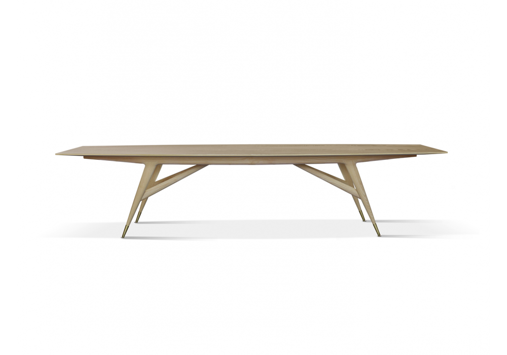 D.859.1 conçue par Gio Ponti pour Molteni&C est une table en frêne teinté naturel ou noir avec pieds en laiton satiné. Disponible en trois dimensions.