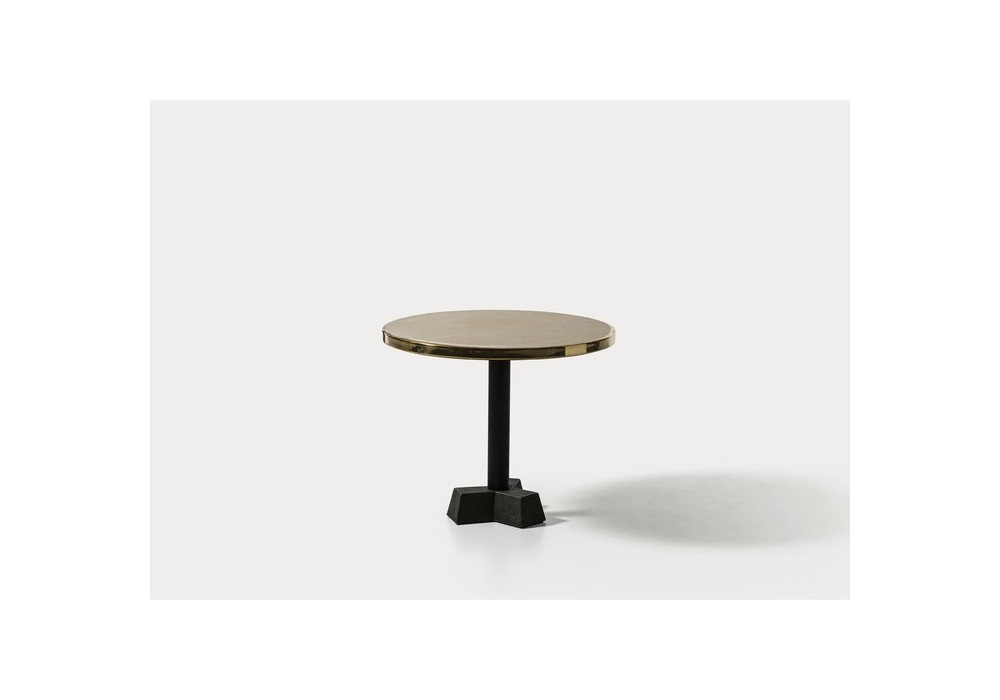 Brass conçue par Paola Navone pour Gervasoni est une table réalisée avec une base en fonte, une colonne en hêtre teinté ébène et un plateau en laiton poli ou en fonte d'aluminium. Disponible en différentes dimensions.