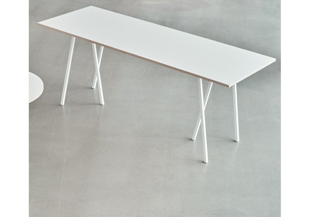 Loop Stand High conçue par Leif Jørgensen pour Hay est une table avec plateau en linoléum noir ou stratifié blanc et pieds en acier enduit de poudre assorti. Disponible en différentes dimensions et finitions.