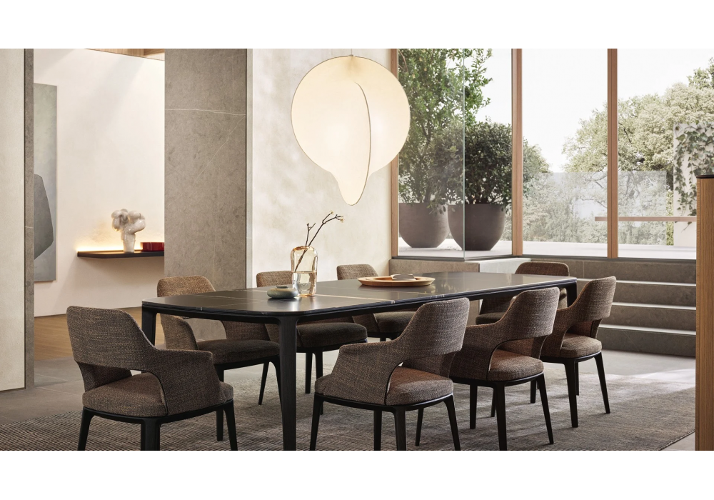 Henry conçue par Emmanuel Gallina pour Poliform est une table réalisée avec des pieds en bois et un plateau en marbre, bois ou verre. Disponible en différentes finitions et dimensions.