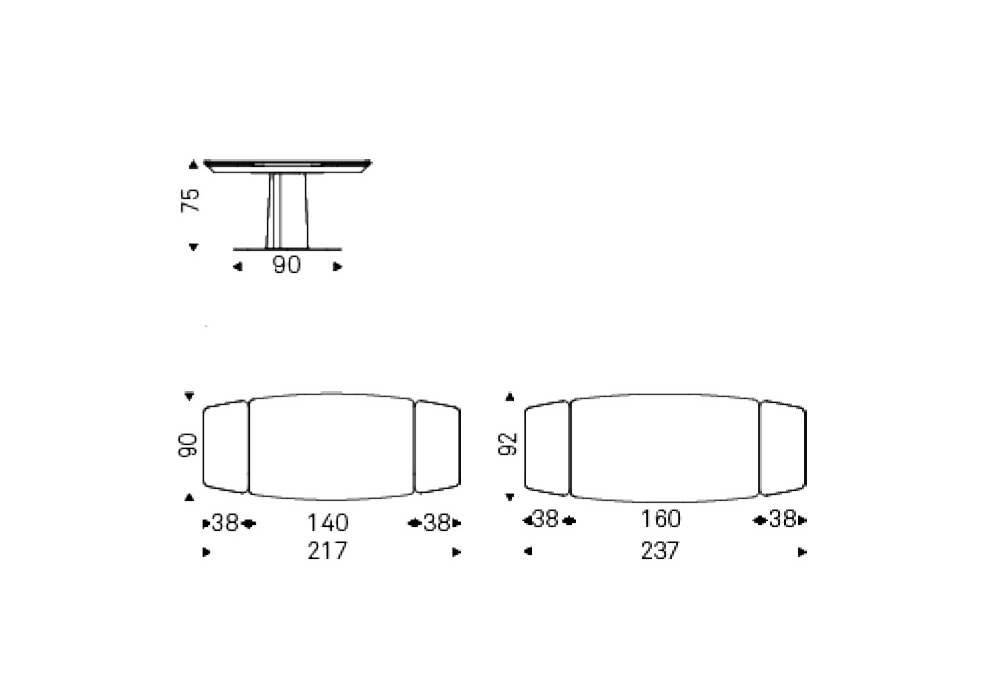 | Dimensions | 140→217 x 90 x H 75 cm; 160→237 x 92 x H 75 cm |