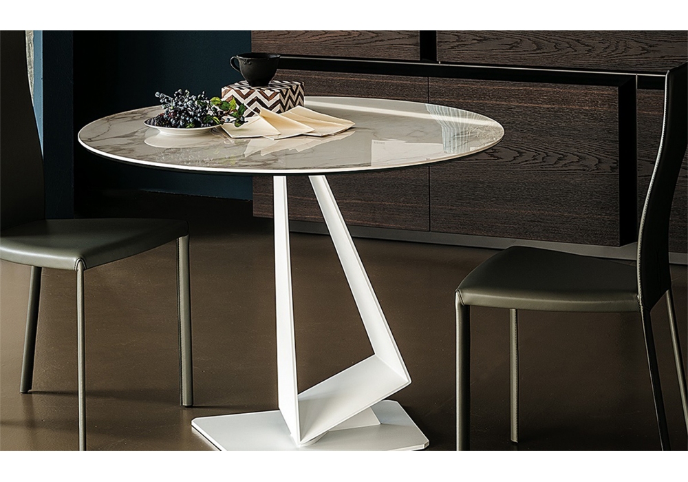 Roger Keramik conçue par Paolo Cattelan pour Cattelan Italia est une table avec base en acier et plateau en céramique. Disponible en différentes finitions et 3 tailles.