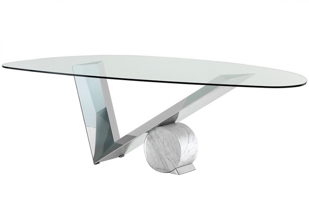 Valentinox conçue par Emanuele Zenere pour Cattelan Italia est une table réalisé avec base en acier inoxydable poli, cylindre en travertin ou marbre et plateau en cristal transparent. Disponible en différentes finitions et 5 modèles.