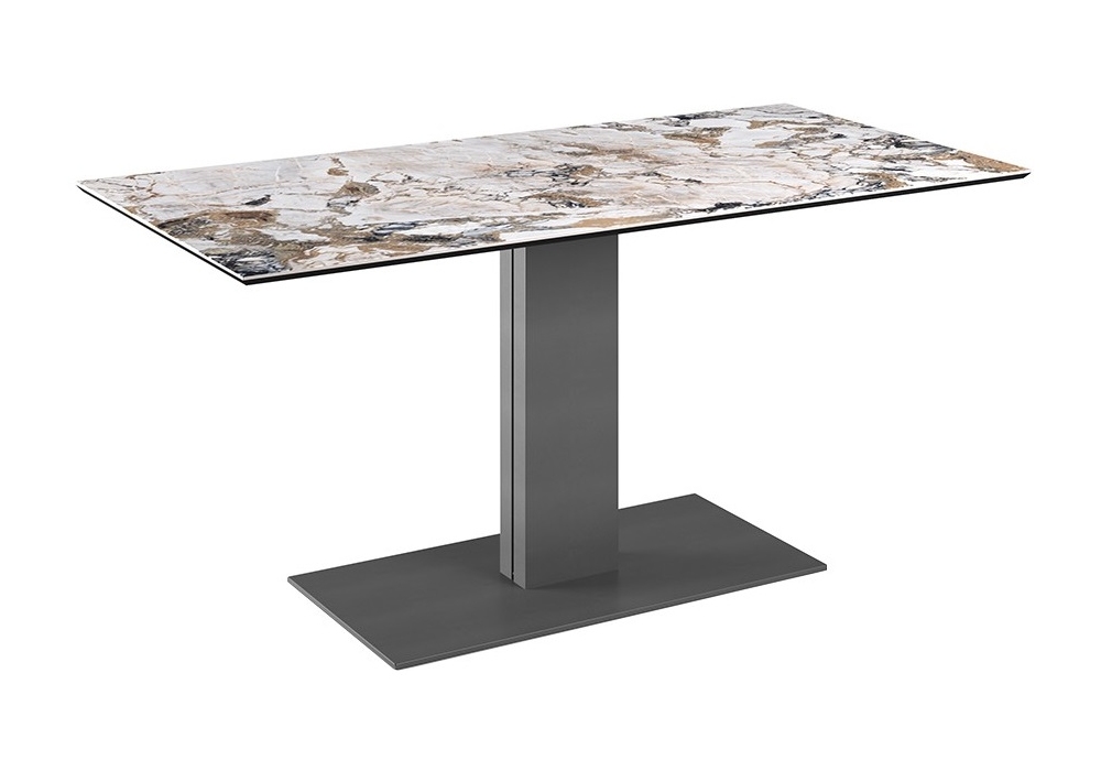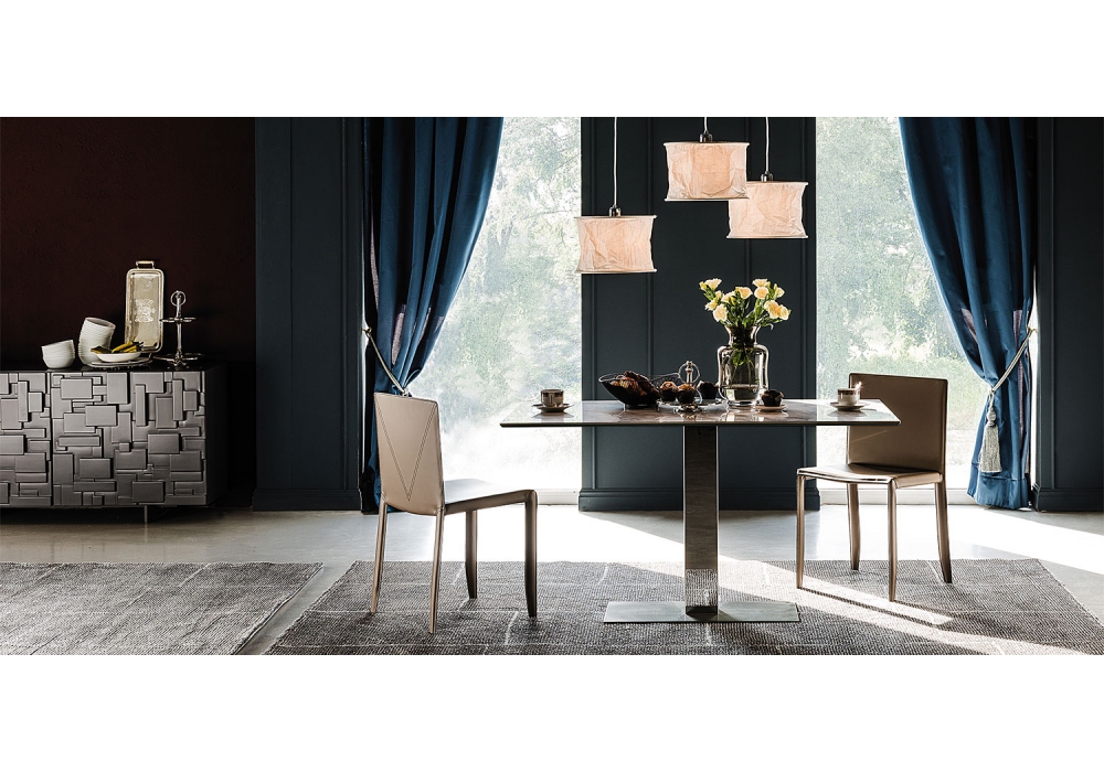 Elvis Keramik conçue par Alberto Danese pour Cattelan Italia est une table avec base en acier inoxydable, colonne en acier inoxydable poli et plateau en céramique. Disponible en différentes finitions et 3 tailles.