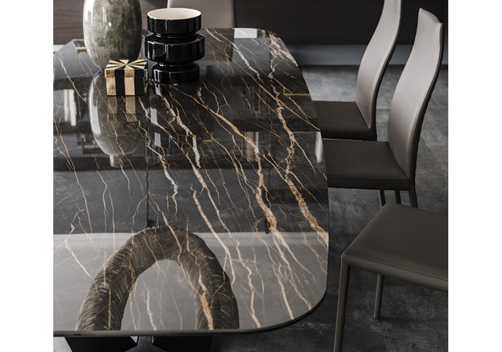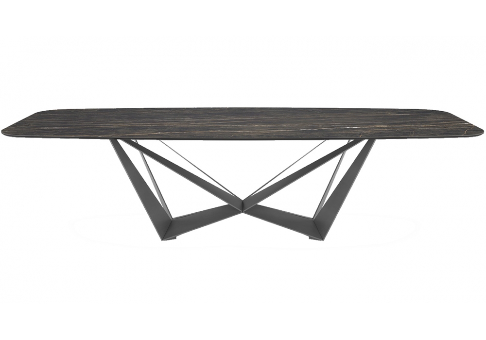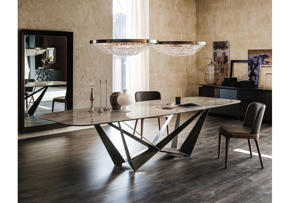 Skorpio Keramik conçue par A. Lucatello & P. Cattelan pour Cattelan Italia est une table réalisé avec base en acier et plateau en céramique. Disponible en différents modèles et finitions.