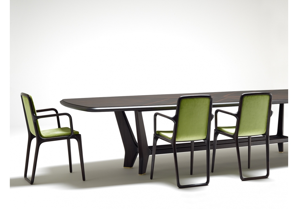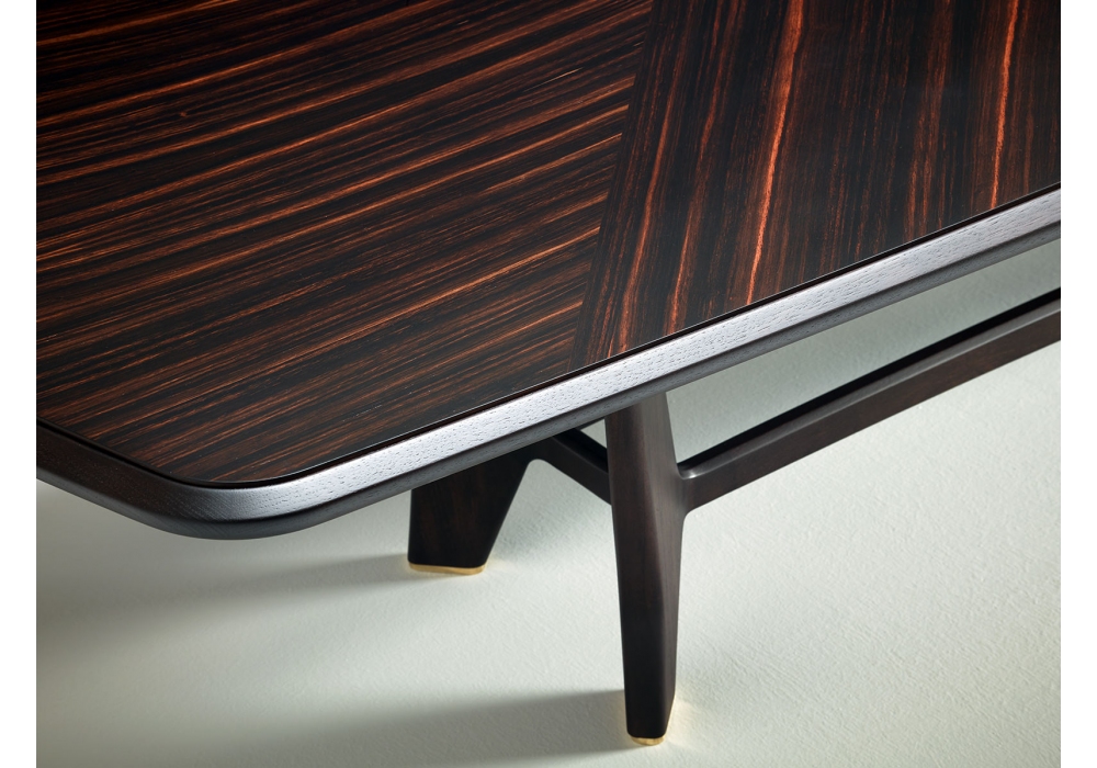 Grand Diner conçue par Giuseppe Casarosa pour Ceccotti Collezioni est une table rectangulaire avec structure en bois de noyer américain. Patins en laiton. Plateau en noyer américain ou ébène.