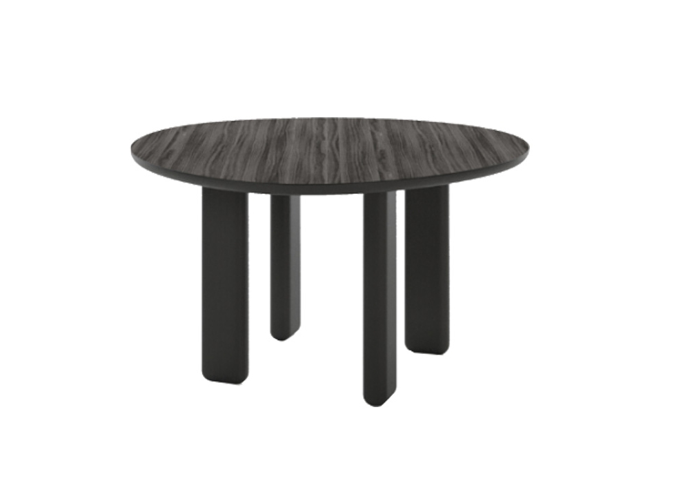 -le dessus en noyer canaletto ou en noyer traité à la chaleur avec des pieds en laqué noir RAL 9005.
