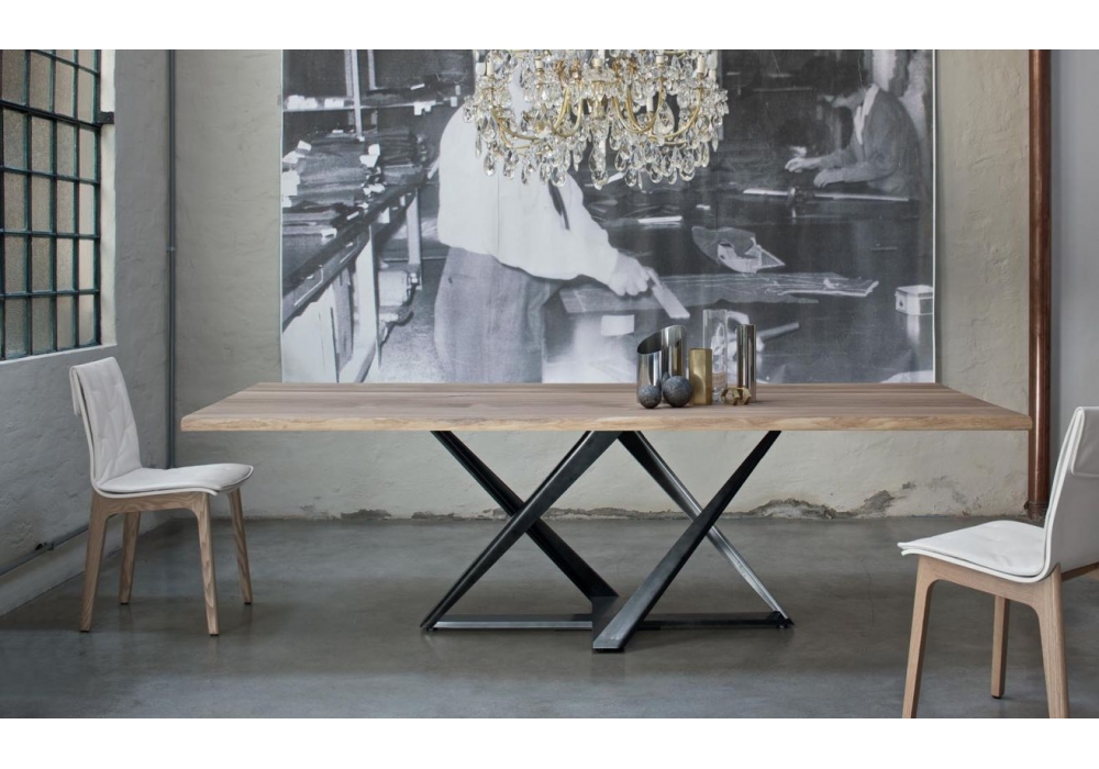 Millennium conçue par Pocci & Dondoli pour Bontempi est une table avec plateau en bois et structure en acier laqué. Différents modèles et finitions sont disponibles.