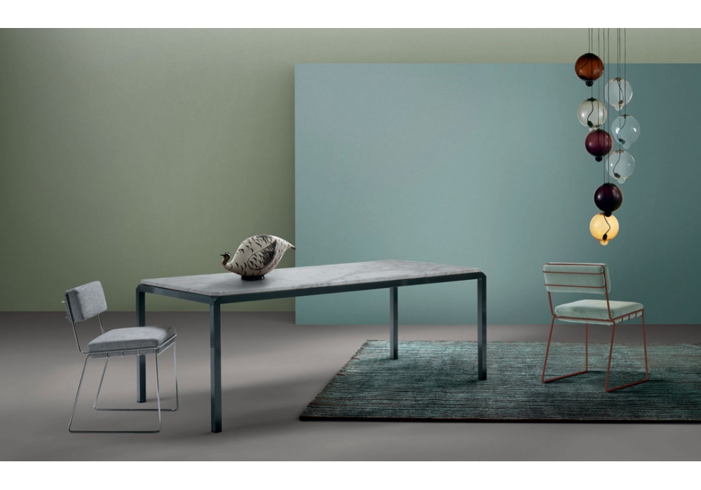 Bebop conçue par Enrico Cesana pour My Home Collection est une table quadrangulaire avec base en acier peint et plateau en MDF ou marbre laqué anti-rayures. Bebop est disponible en différentes tailles et finitions.