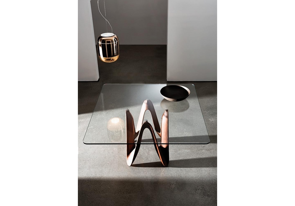 Lambda conçue par Gianluigi Landoni pour Sovet est une table réalisée avec un pied en cristalplant ou en frêne et un plateau en verre ou en céramique. Disponible en différentes finitions et dimensions.