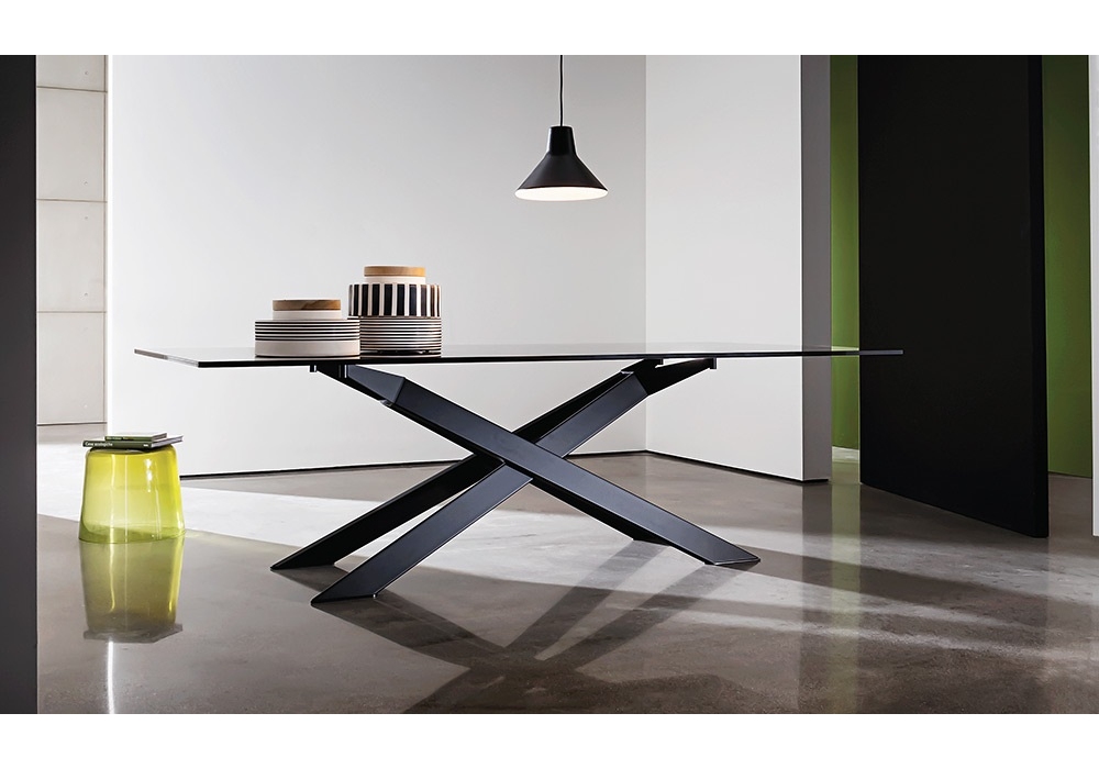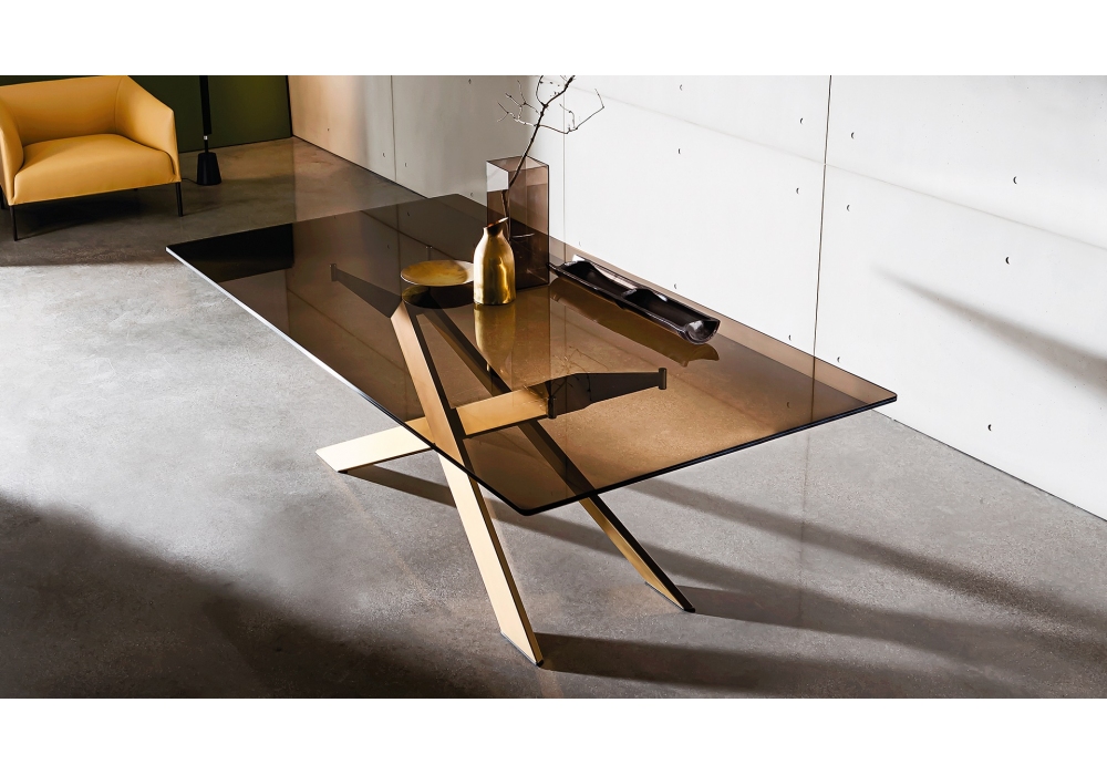 Cross conçue par Gianluigi Landoni pour Sovet est une table réalisée avec structure en métal et plateau en verre, céramique ou bois. Disponible en différentes finitions et dimensions.